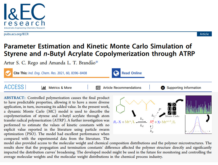 Rego, A. S., & Brandão, A. L. (2021). Parameter estimation and kinetic Monte Carlo simulation of styrene and n-butyl acrylate copolymerization through ATRP. Industrial & Engineering Chemistry Research, 60(23), 8396-8408.