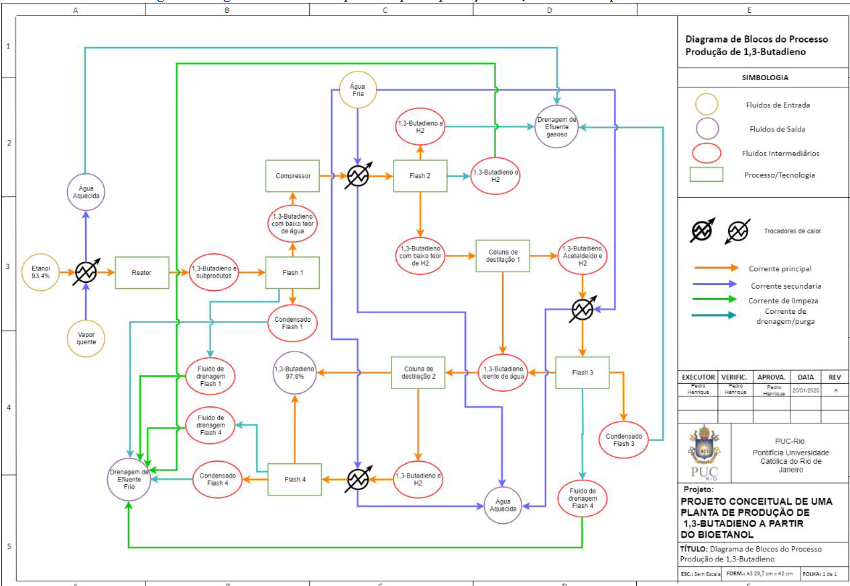 » FERREIRA, P. H. G.; DE CARVALHO, R. B.; BRANDÃO, A. L. T. Modelagem, simulação e avaliação econômica preliminar de uma planta de produção de 1,3-butadieno a partir do bioetanol. Brazilian Journal of Development, v. 7, p. 84526-84546, 2021.