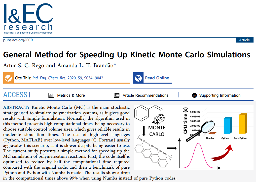 Rego, A. S., & Brandão, A. L. (2020). General method for speeding up kinetic Monte Carlo simulations. Industrial & Engineering Chemistry Research, 59(19), 9034-9042.